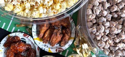 Order 25, 50, or 100 count bone-in wings and add Fabled Popcorn Company party bowls.